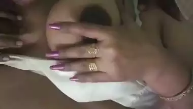 Busty Tamil Milf wife eating cum